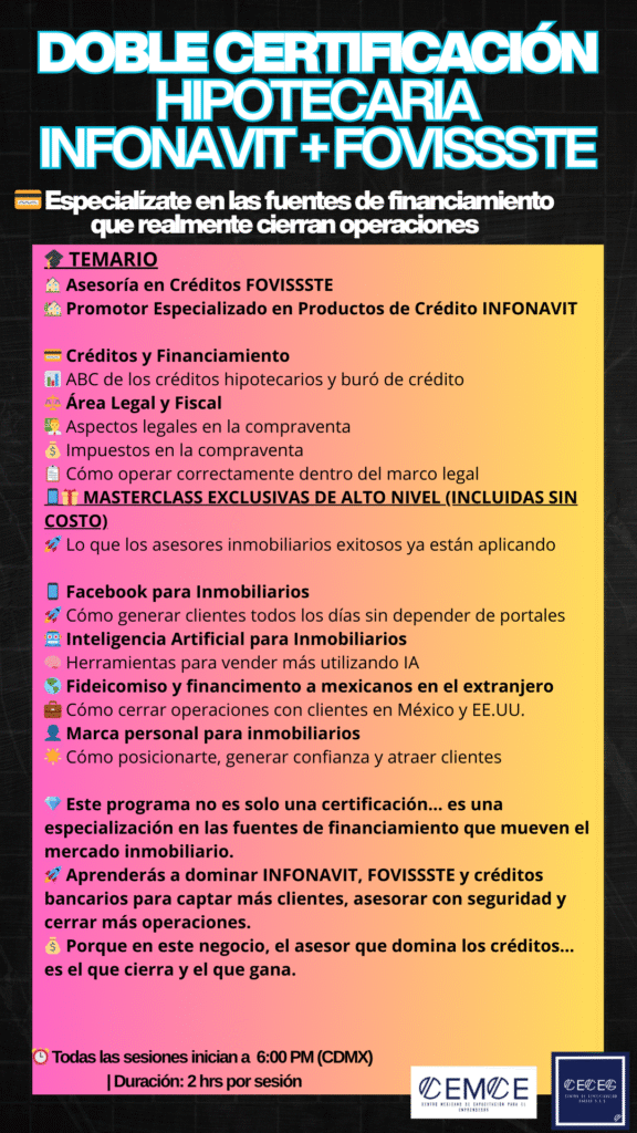 🔥 Con esta doble certificación no solo asesoras… te conviertes en un experto en créditos hipotecarios y multiplicas tus fuentes de ingreso.